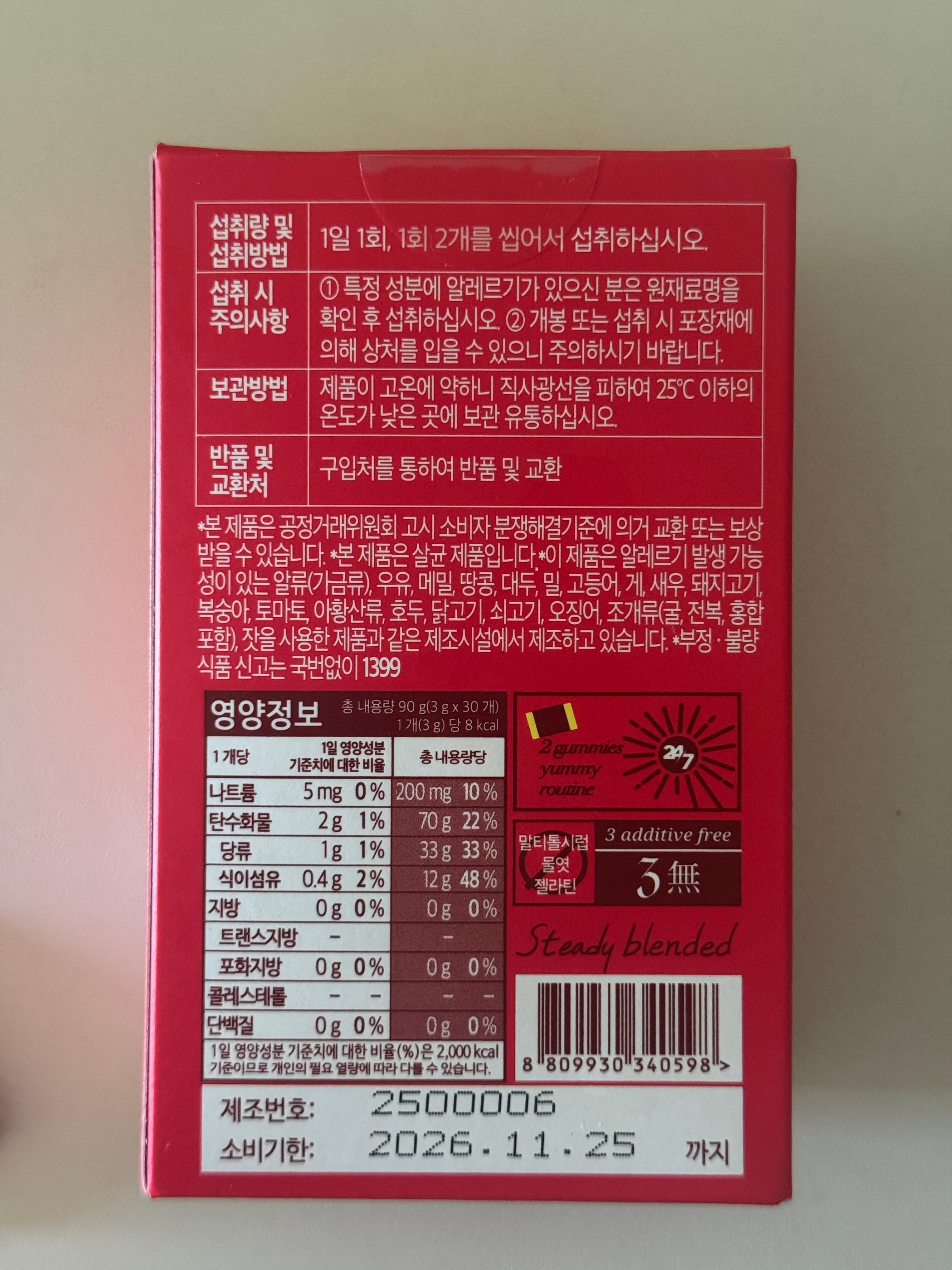 하루에 2개씩 개별포장이 되있어서 먹기 편해용